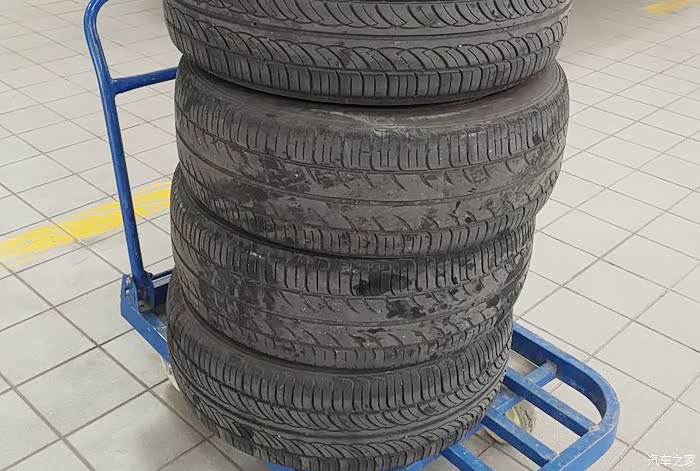 拆下来的胎,磨损的确实很大,基本平了,还压了不少钉子,难怪有慢性漏气。