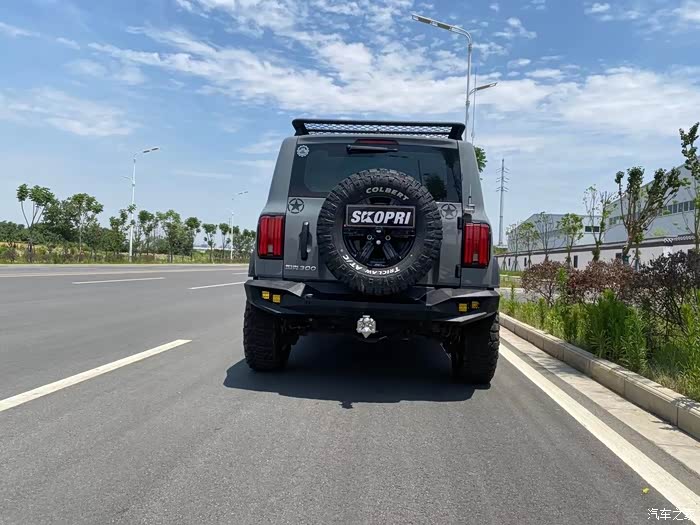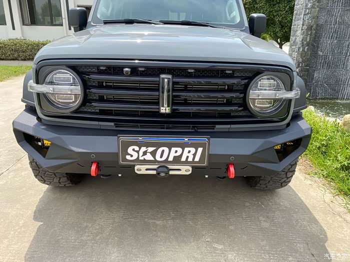 外观改装显而易见,加装了前杠包围,增加了绞盘,前杠看起来比原车的更有力量感,而且硬派气息十足,可谓是走的硬汉风格啊!