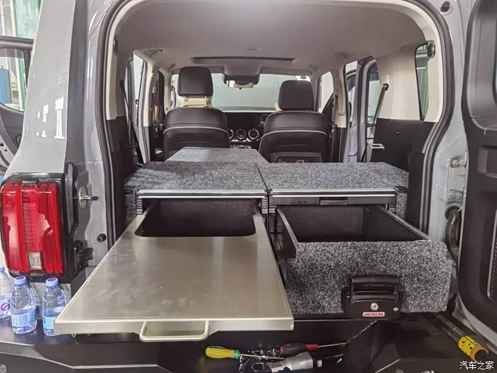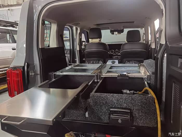 后排的改装是最吸引我的,改装了抽屉盒,可以增加储物而且可以加装一些炊具,这样行驶在路上也可以让自己吃的很好!