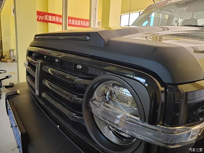车头部分我改装了一对闪电雾灯,大连在秋冬季大雾天气比较多,这对闪电雾灯的穿透力那是相当强,增加了安全系数,安装了一套带流光led的沙石挡,还有一个机盖保护罩。后期我还想安装一个牛栏,在牛栏上装一排射灯,效果也应该会不错。