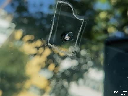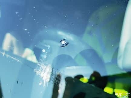 跟在了一辆大货车后面,一个不小心一个不留神一颗牙齿般的小石头不幸的落在了我的爱车上造成了一个不疼不痒的创伤,前挡风玻璃被蹦出了一个小拇指那么大的开口因为前挡风玻璃是隔音玻璃硬度么还不明确,但是之前在论坛上有所耳闻,说玻璃不是很结实算了事情出了找大车也是没办法解决的,还是回去在做打算