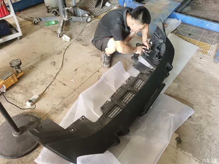 由于闪电雾灯比原厂的大两圈这个位置需要略切除一点。