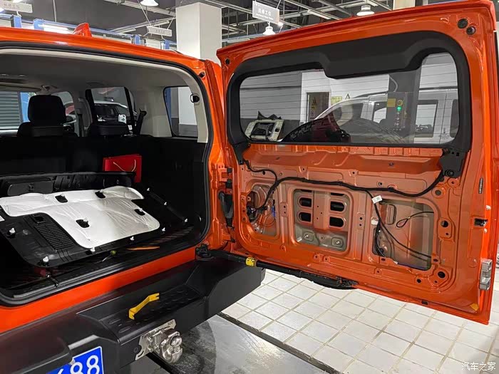 这个尾门有点按键不灵,估计就是插座没有安装好,把后尾箱拆开了,其实长城门洞卡子都是通用型的,这一点值得表扬,市场上很好找,打开后后备箱门有点单薄,挂备胎可能后期会下沉,装限位或者市面上的一些改装件