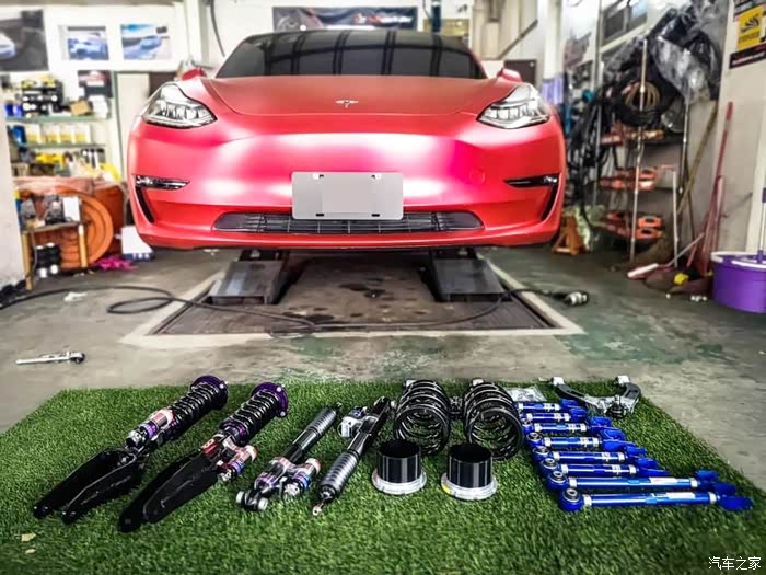 为了让底盘更好的操控!这次给特斯拉model3安装上D2避震和hardrace套件!