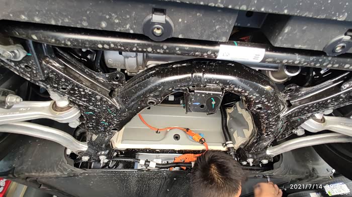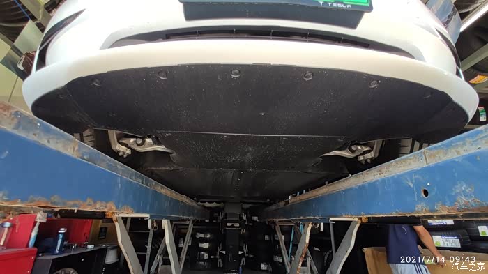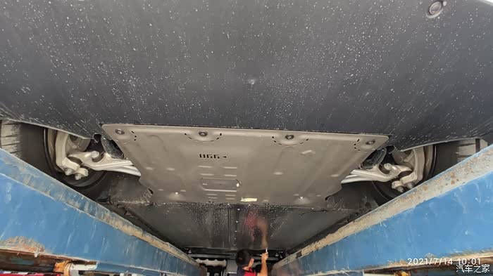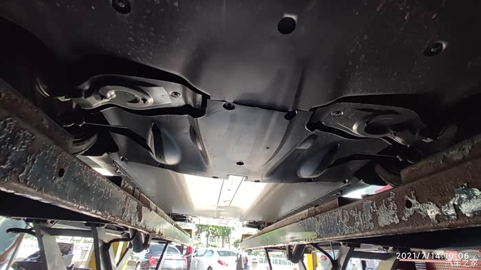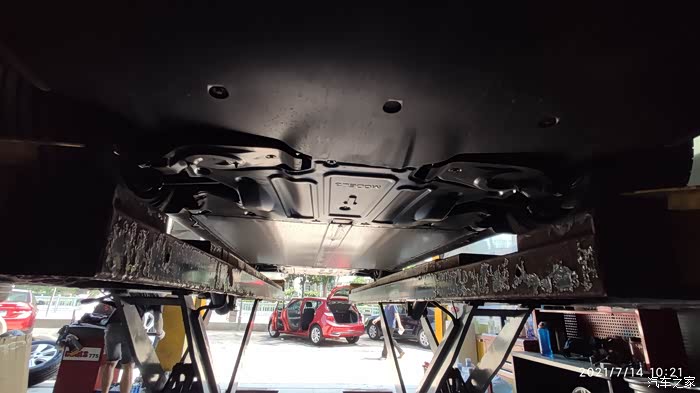 原厂底盘还是比较工整比较平的,就是中间车底是动力电池是钢板防护,前后都是塑料的,很薄很软,除非路况很好,为了安全差点的路还是少走。