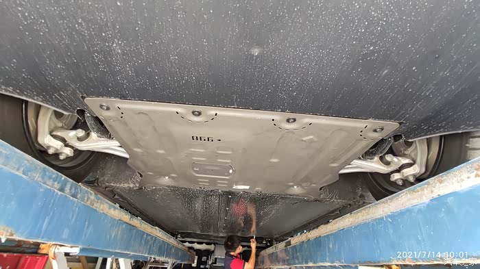 早上直接去补胎,最好的蘑菇钉补胎,一张毛爷爷没的了。唉,天气好热,补胎小哥一身汗。顺便把原厂前后塑料护板换成我买的锰钢防护钢板。现在的手工费不便宜,都比材料费都贵,和老板商量一下,免费洗个车,也行就当优惠了。天气很热,车行老板赚钱也不容易。