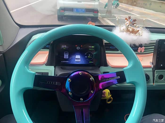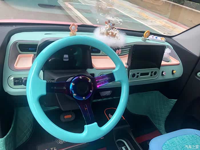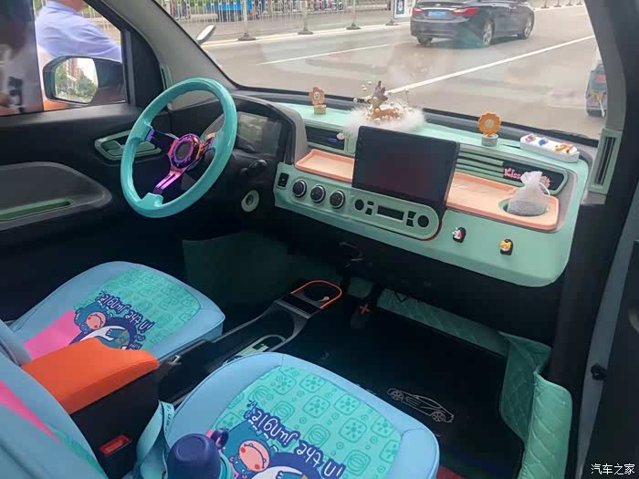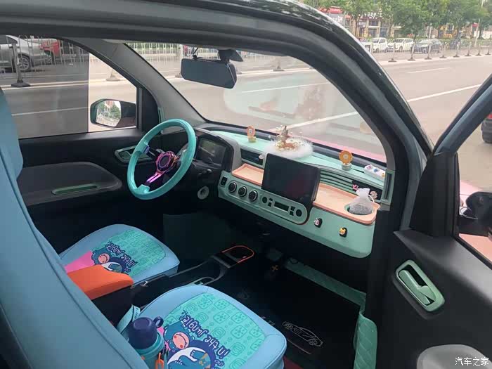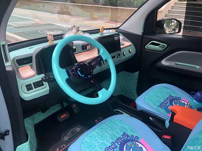 换了方向盘,内饰以天空蓝为主色调