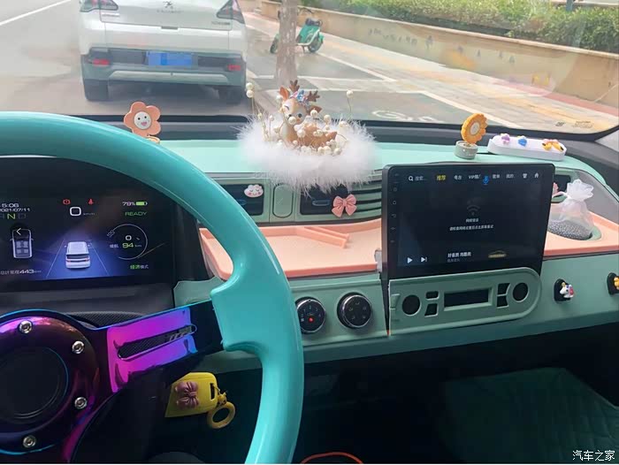 在来一个正面的 ,驾驶位的照片, 昨天刚贴好的“美少女战士”的小门贴,确实漂亮,,