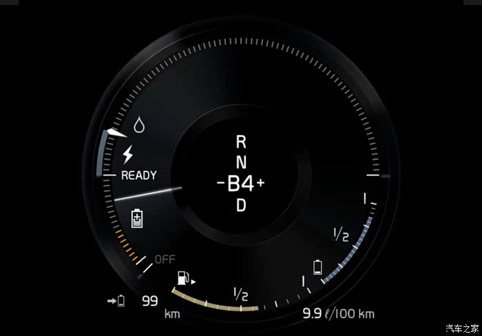 3. 闪电符号以下的指针蓝色区间,表示电机动力区间,指针在蓝色区间以内,仅使用电机,指针超过蓝色区间,则额外启动发动机。