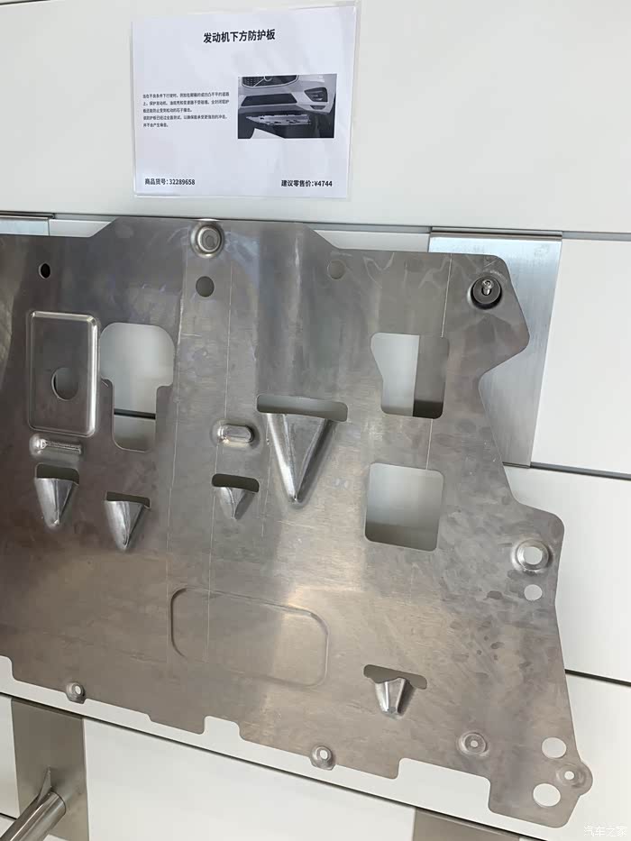 原厂铝合金发动机下护板,看着非常厚实,而且重量比较轻,适合常跑烂路的车友们,以避免底盘机油底壳等磕破。