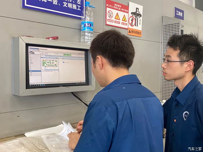 师傅通过电脑系统,查看了车辆状况,建议更新车辆系统,由于今天我们赶时间,选择下次再更新。车辆保养主要花时大概在半小时左右,加上其他程序前后大概在一小时左右。