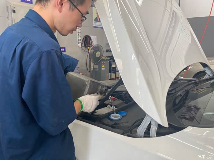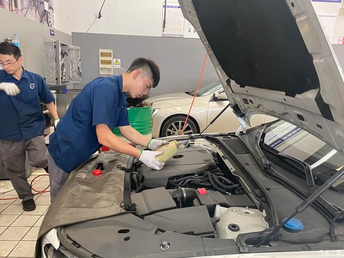 工作人员很热情贴心,给我们的驾驶座椅和方向盘套上保护。然后还给我们的保养做了信息登记,我们做的是常规的基础保养。工作人员告诉我们,如果在手机上提前预约好到店后可减少排队等候时间。