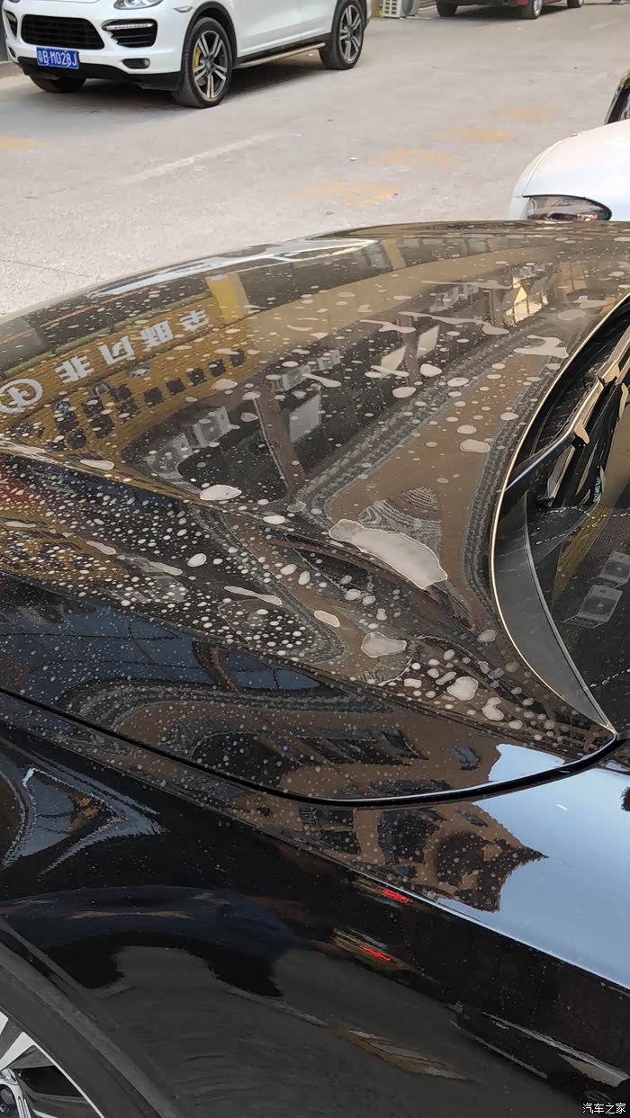 经过这三天两夜的痛定思痛,我还没有那个决心去贴车衣,当时觉得车衣的保护能力没这么强的。关键的是接下的来一场雨,雨后看到我的新车这个样子,立马就去洗车店。最最最主要是到店里花了45还没洗彻底,告诉我上面有空调水的印子,洗不掉,要用纸巾抹点洁厕灵才能洗掉。一下子我就决定了!去贴车衣。