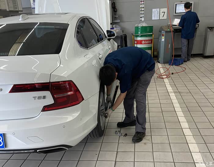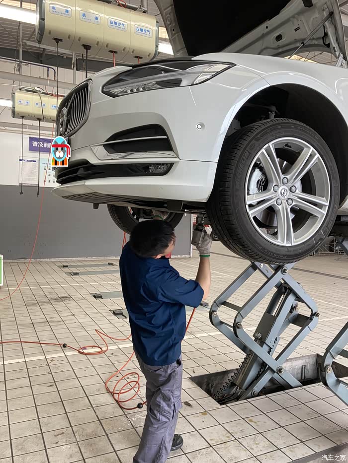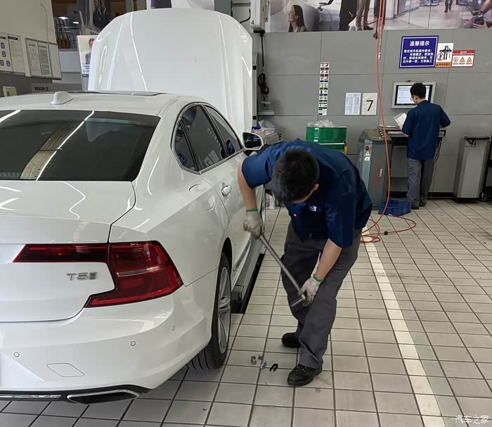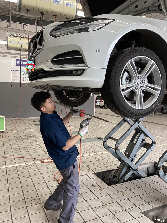 放完机油,保养师傅尽然让把我们发动机护板卸下来,检查发动机,这一细节也让我很有感触,以前的车保养时,只会用手电透过护板看看,没想到沃尔沃做的如此细致。
