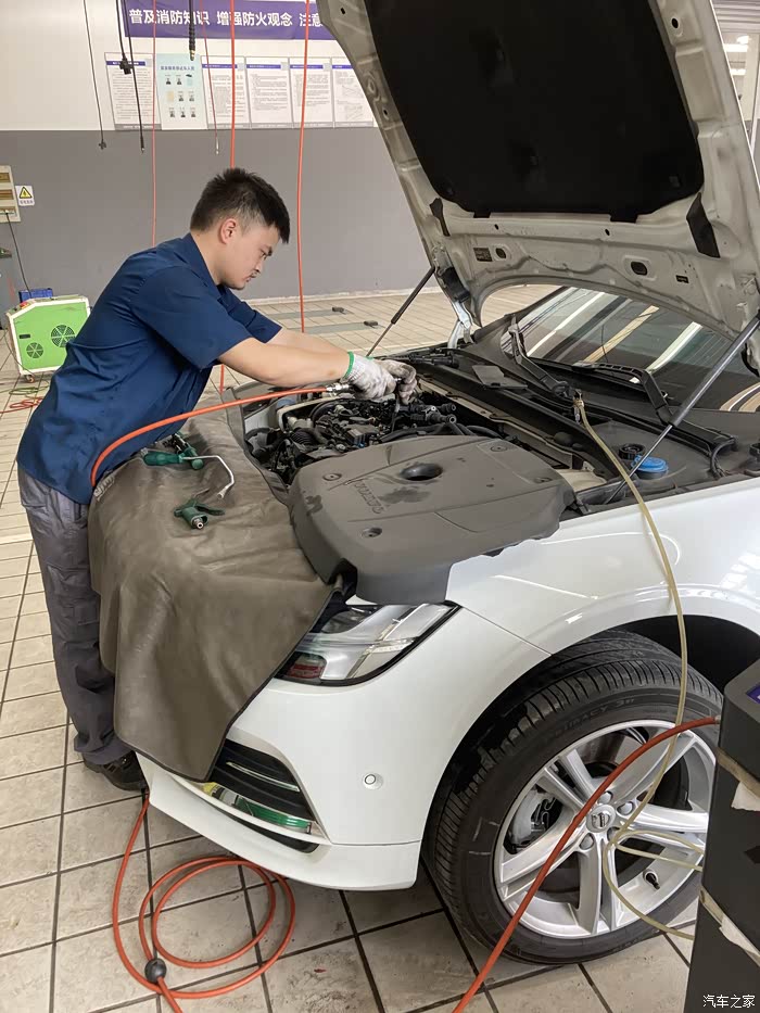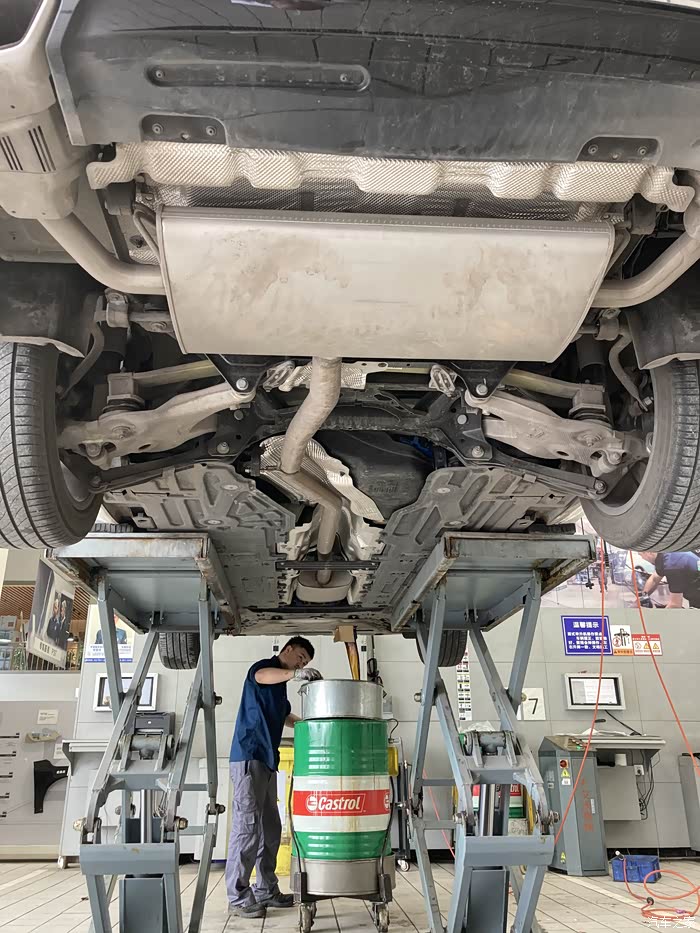 保养师傅挺认真负责的,机油放完后,看见发动机护板上溅着机油,赶紧拿纸来擦拭,后面还拿清洁剂来清理,为服务细节点赞。