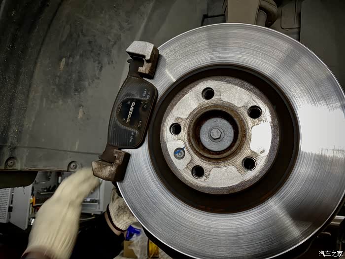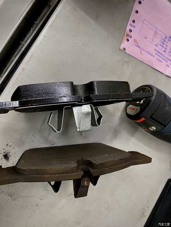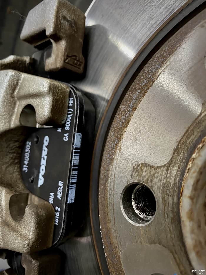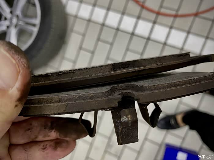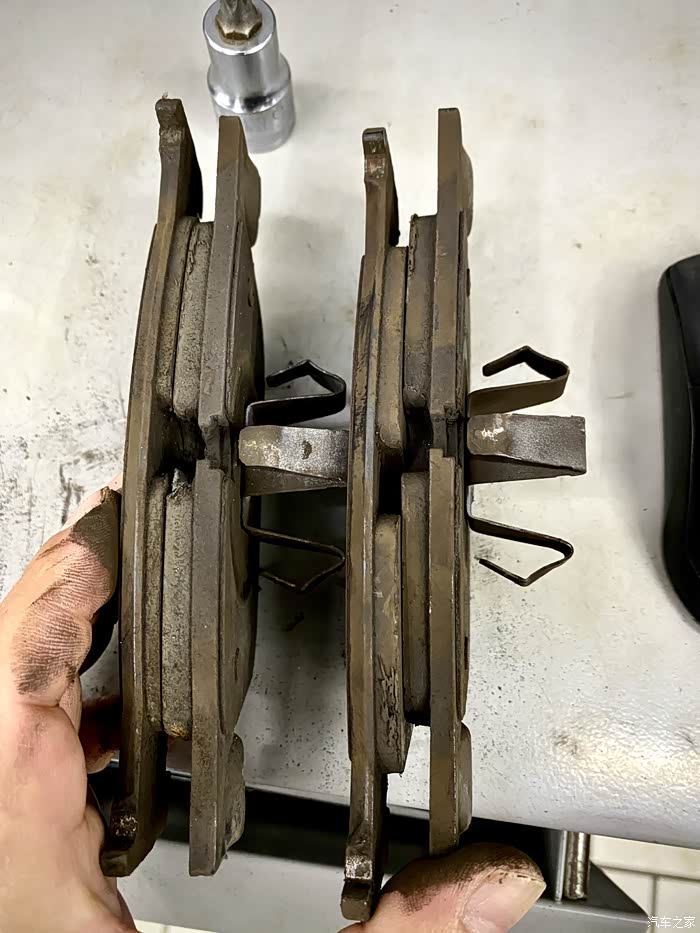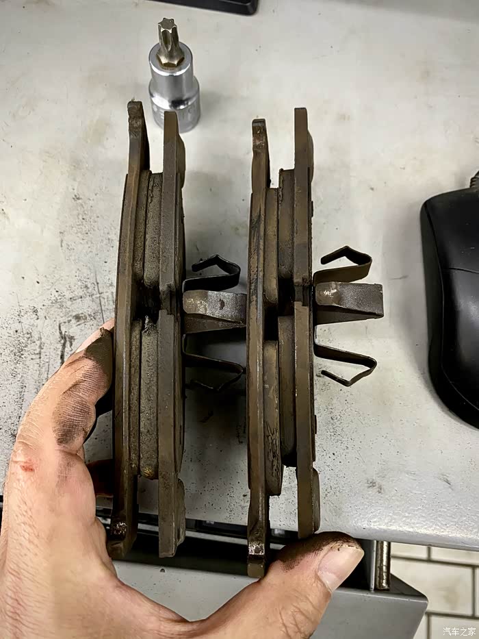 看磨损,驾驶侧的刹车片磨损很均匀,副驾那边的刹车磨损有差异