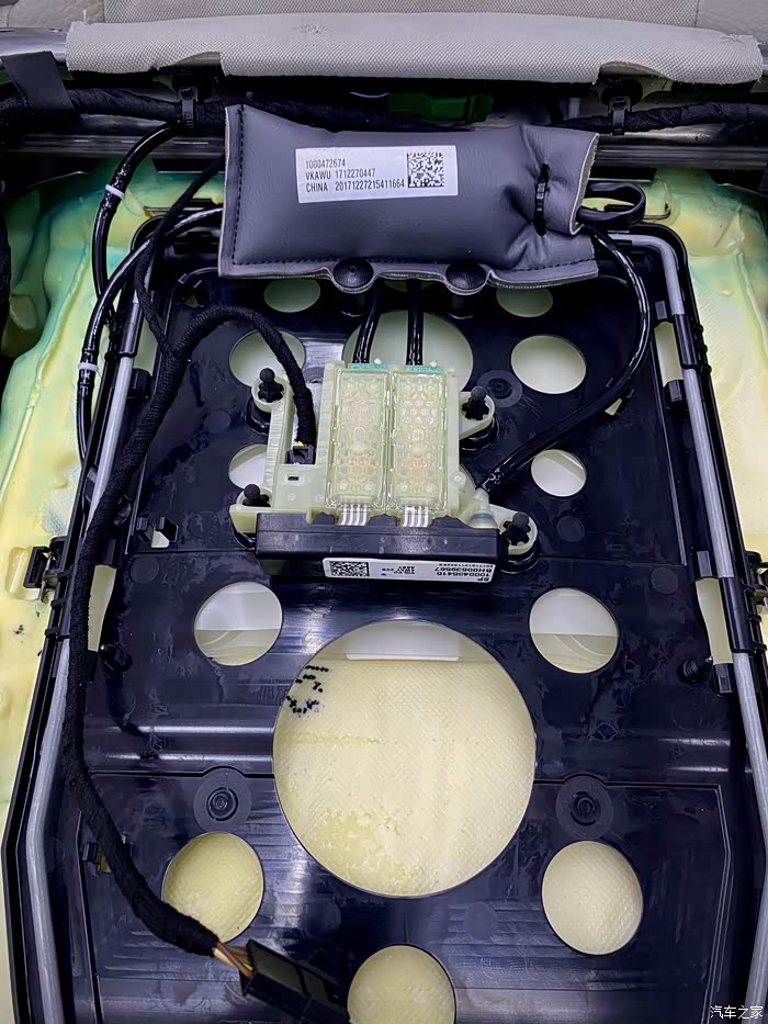 顶住腰部的这一块比较厚的海绵气囊是没有问题的,这段连接着要更换的气囊,气囊进气后多余的气体进入图片上部的海绵气囊里面,然后有效支撑住腰部