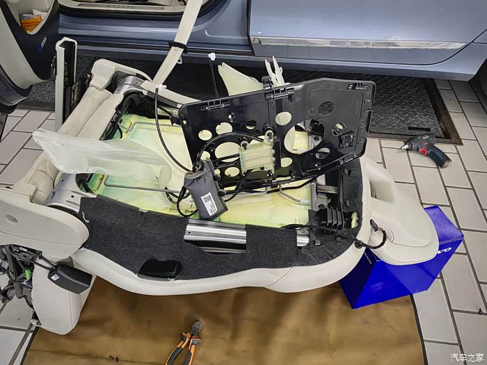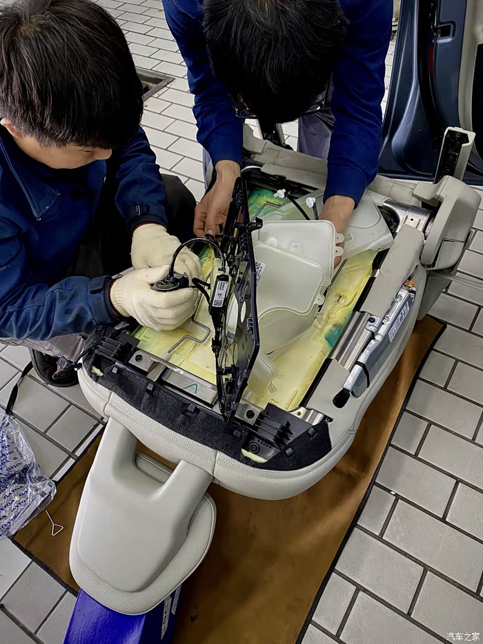 气囊更换完毕,还有最后的一个步骤,安装座椅