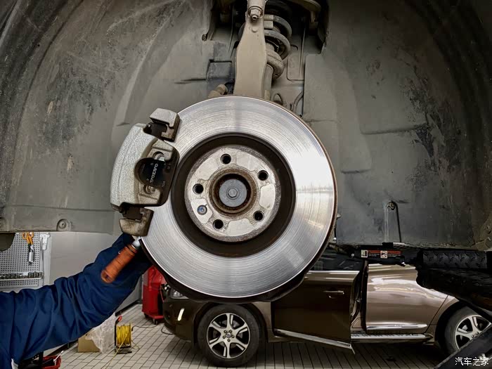 除了这两样外,还测量了一下后尾部的悬挂簧片有没有塌陷的问题,算是正常,数据也达标。中间的过程算是顺利,最大的收获还是见到了同是S90车友的哥们大宝,我们约好了临沂见的,他当天更换了前后刹车片(他的里程数比我的高一万公里),同时换了两个轮胎。具体的更换过程以后的图片有说明,不再赘述了。