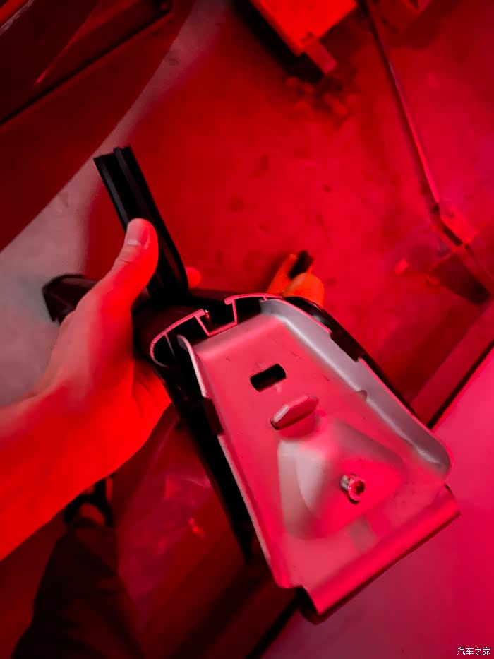 这里的两个螺丝要松下来,为了把横杆拉长,适应车子的宽度