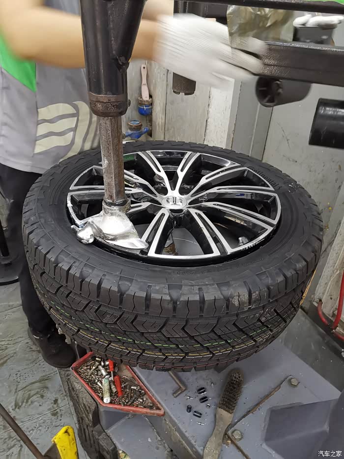 轮胎已经安装好了,和智远豪华的十条幅轮毂还非常的搭配,颜值也不低!!!!!