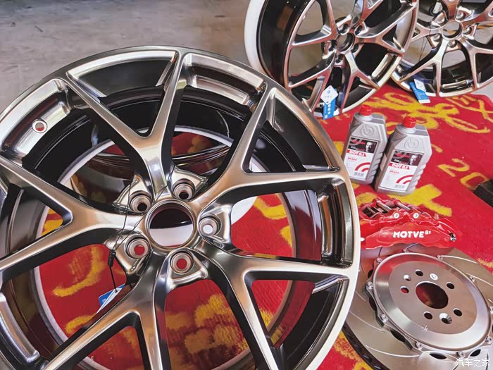 装备集合!宏鑫轮毂,迈拓卡钳,布雷博DOT5.1刹车油,20颗锻造轮毂螺丝。