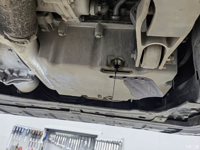 快放完油的发动机底部,铝制油底壳,敲了敲,很有厚实感。