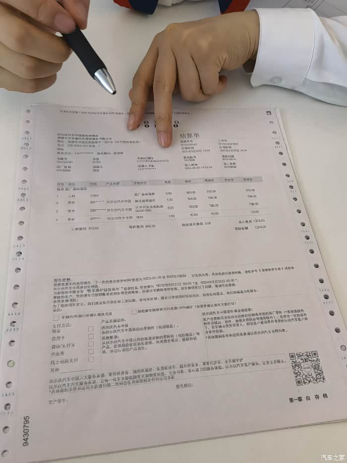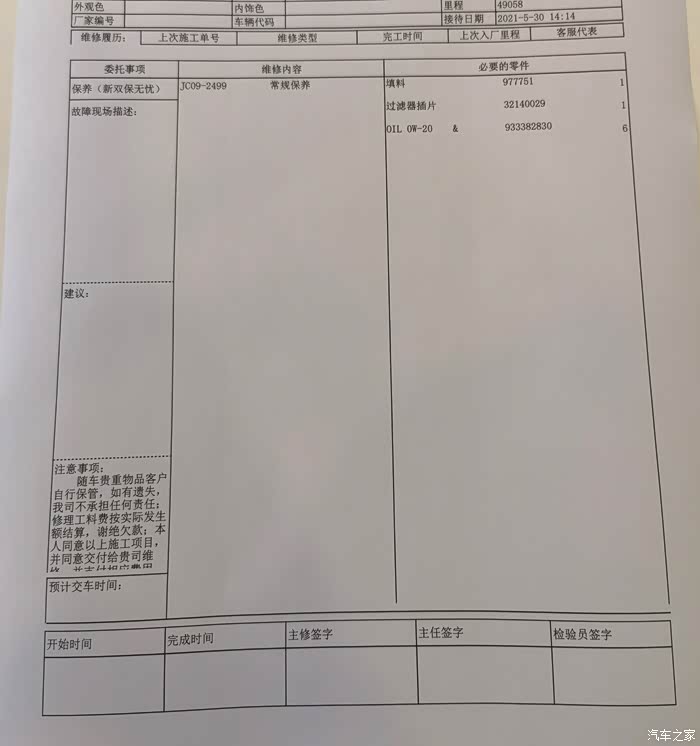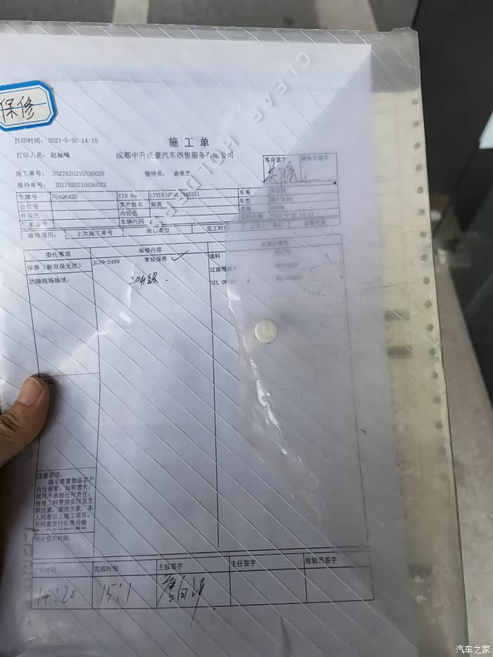大概四十分钟左右,美女接待告知我已经保养完毕,这是施工单据等等。