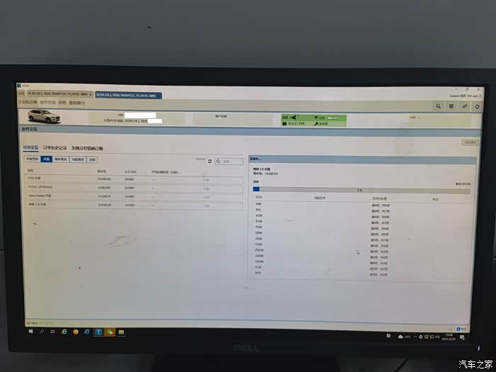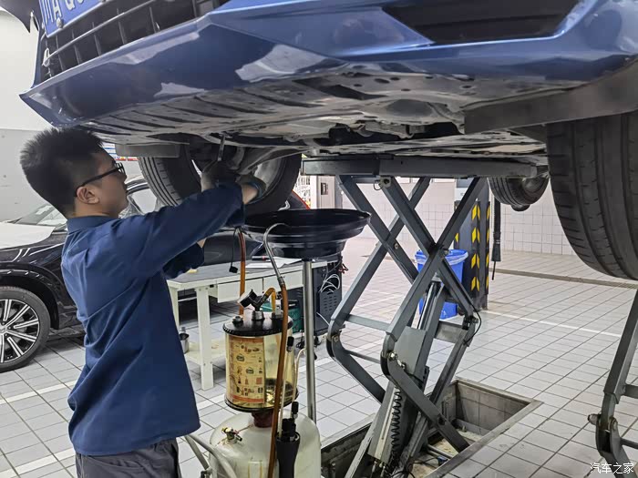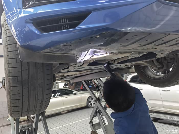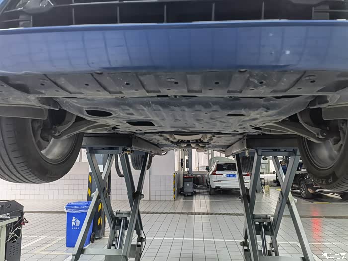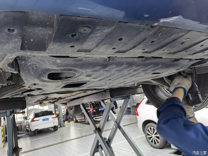 来到车间,我的沃沃已经被架上了举升机,技工已经开始进行了保养工作,仪表盘也显示连接至维修中心。