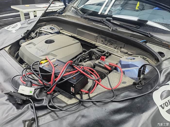 升级时为保证车辆电源电压稳定,师傅会接上外接电源(忽略我脏脏的机舱)。