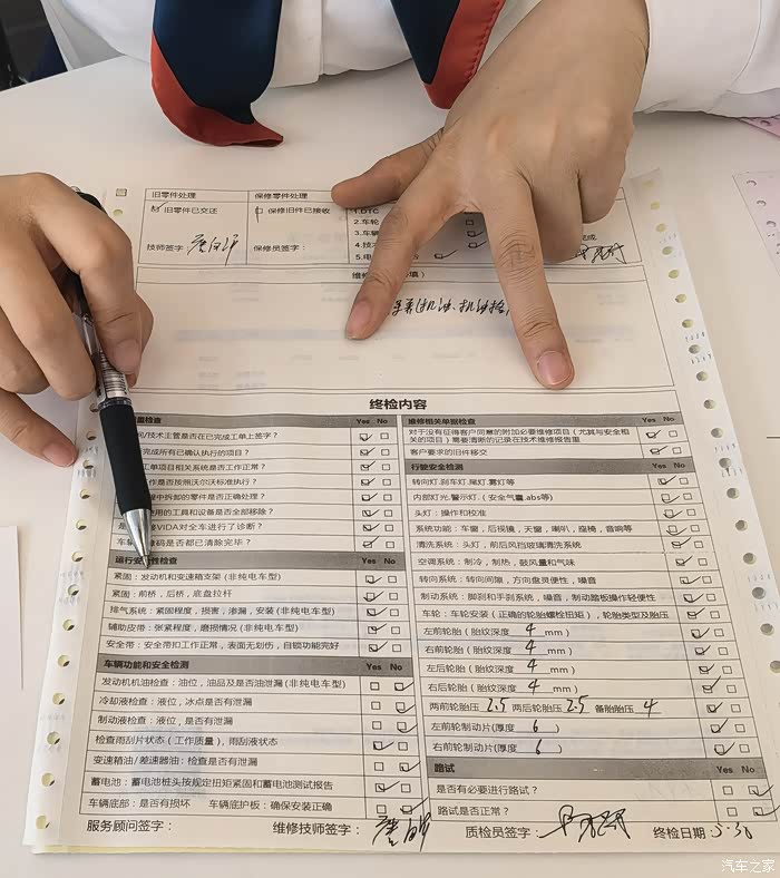 最后带上一句,本次保养属于免费赠送,如果您确认无误,请签字。