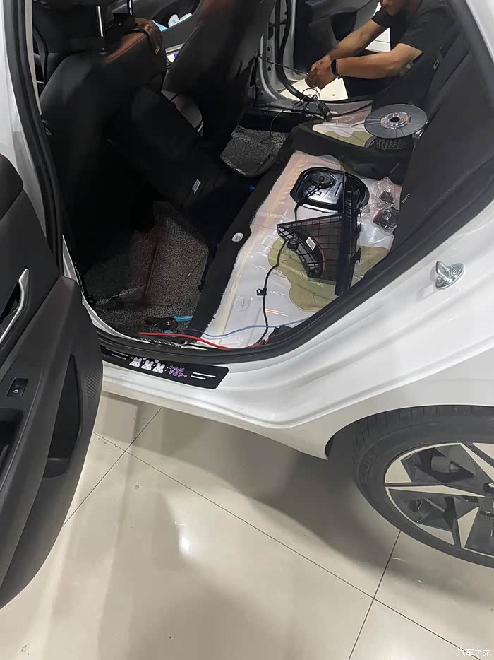 后排座椅已经全部拆光了,走好了线。师傅给调好了音,坐在车厢内犹如酒吧一样的感觉,重低音振的头皮发麻,虽然是装在后备箱,但是效果还是挺震撼的,回来的路上听了一路,低音一响什么风噪胎噪的啥也听不见了声音下,潜力超级足,挺满意的。