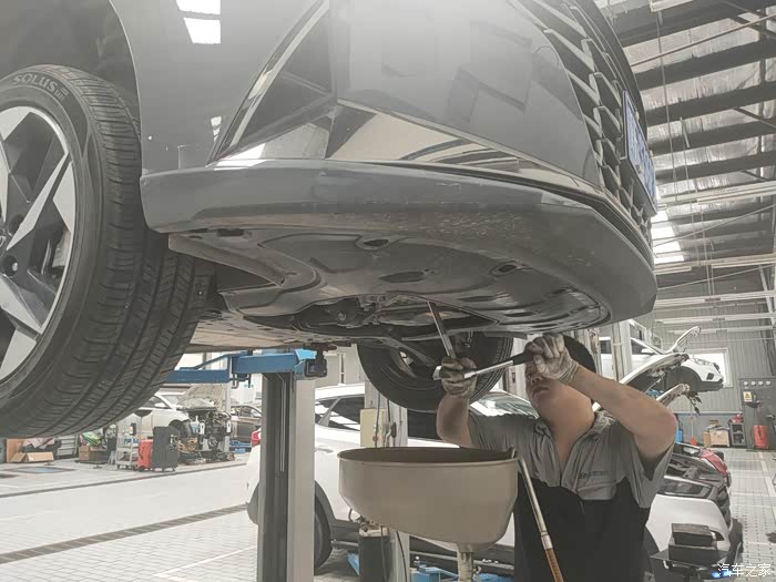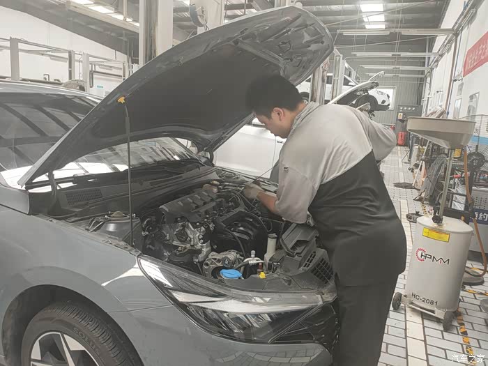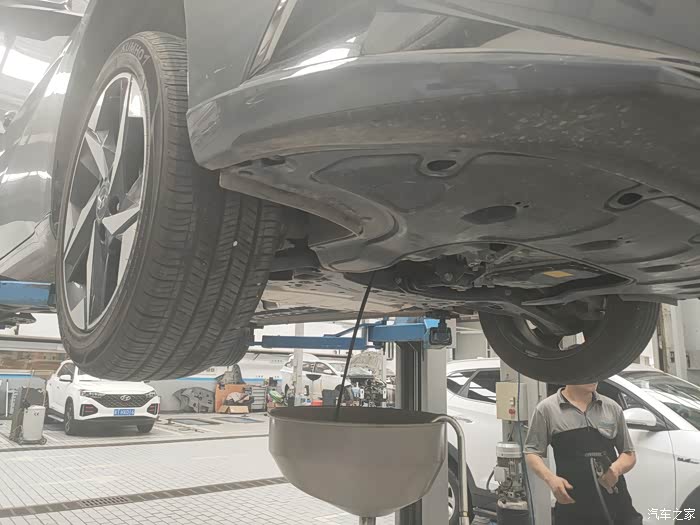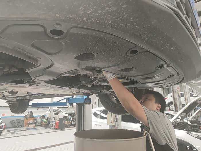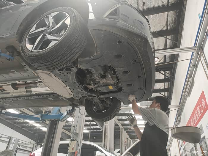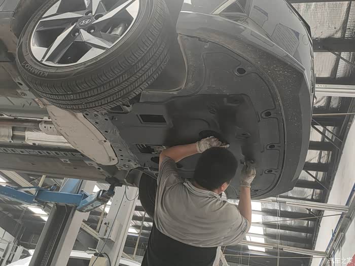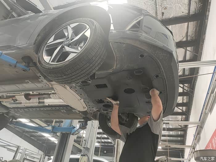 最后师傅帮我检查下底盘是否有磕碰,看我没装护板,又给我安利了好多发动机护板的好处,特意叮嘱我伊兰特的地盘比较低,很容易托底,安装发动机护板是很有必要的。