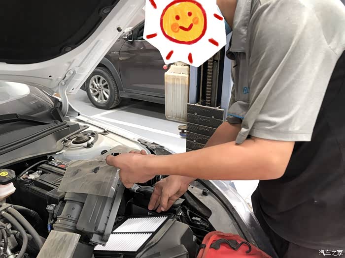 与小伊相伴有三个月的时间了,可能是买的时候我和媳妇儿都比较满意的,所以磨合期还是开着很顺手的,经历了水淹,带小伊来店里检查一下,正好把首保做了,当时买车的时候赠送了终身免费基础保养,这次首保也是免费的,虽然是免费的,但是感觉店里哥们儿还是很认真细心的,整个首保也是全程参与,下面就是整个流程啦