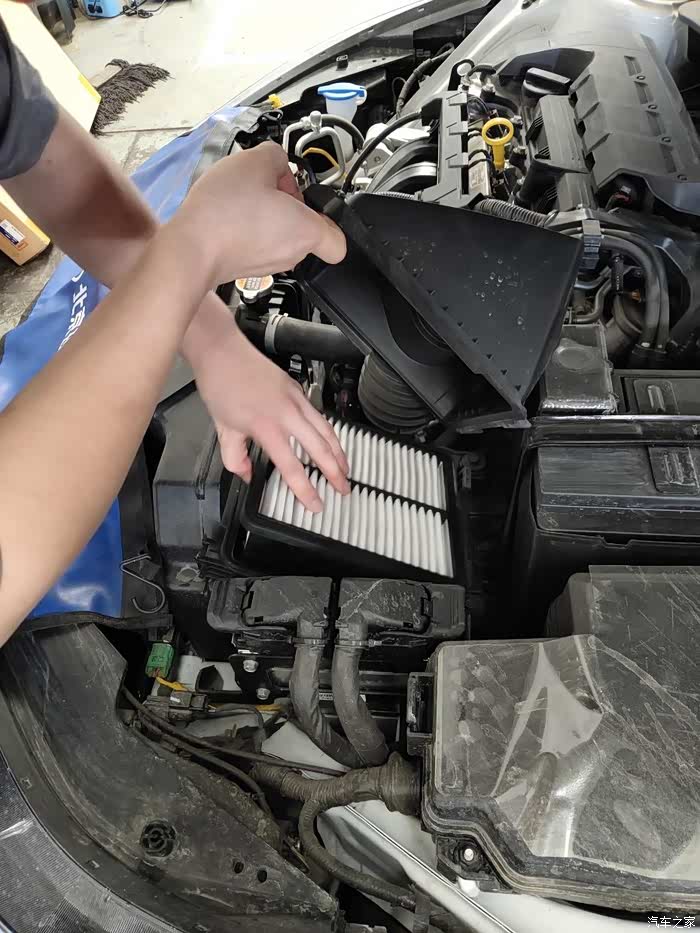 首保更换了机油 、机油滤芯、空气滤芯,车间特别热,师傅辛苦了