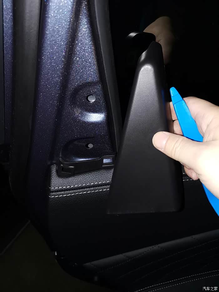 3、后车门左上方的盖板也要取下来,用撬棒直接起就行。