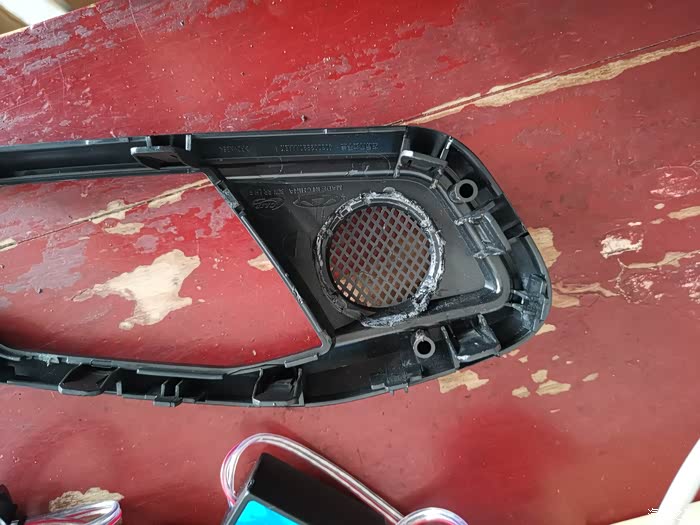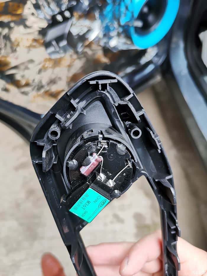 9、原车后门高音喇叭是一寸的,有个模具直接卡进去的。想要换成1.5寸的高音喇叭,这个模具必须得干掉,利用切割机给它切掉。