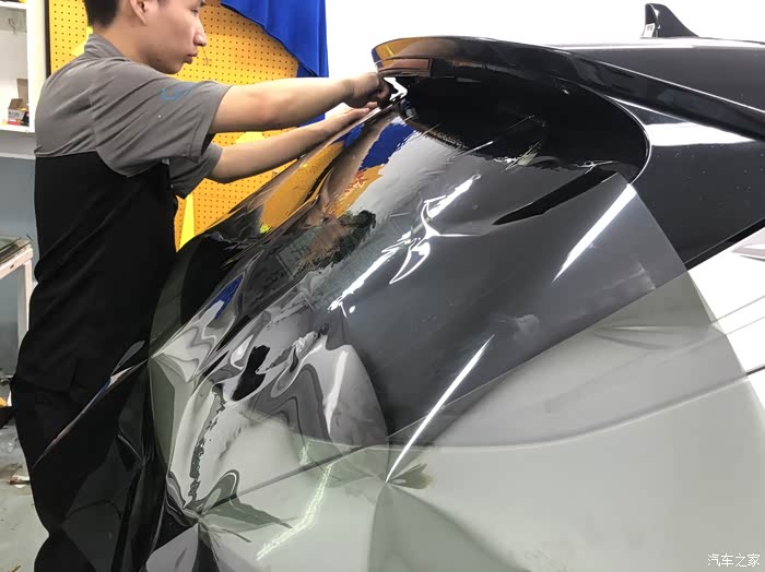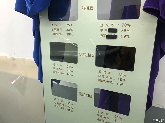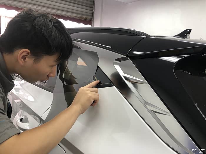 贴膜之前还有一个最重要的选膜环节了,很多人喜欢选暗的膜,觉得隐私性会好一点,但是这种膜透光性太差,尤其是晚上开车转弯影响视线。我选择的是透光最好的那种。毕竟车子还是拿来开的嘛,视线上优先考虑。