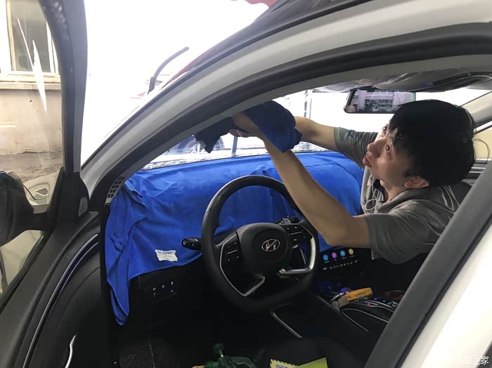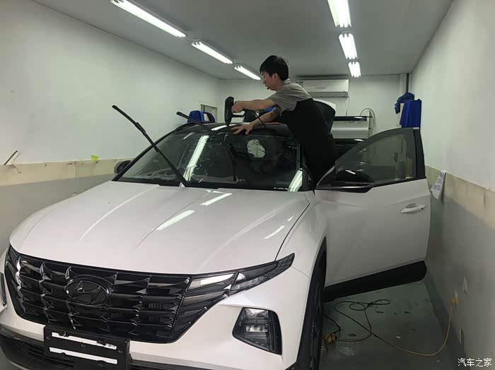 我是在车管所上完了牌,预约了第二天进4s店贴膜的,首先到了4s店,贴膜师傅会先安排给我的途胜L清洗,这里建议阴天时来贴膜,空气湿度大,空气中悬浮物也会少一点,可避免车膜和玻璃间出现杂质,影响美观。