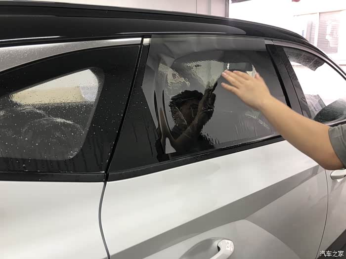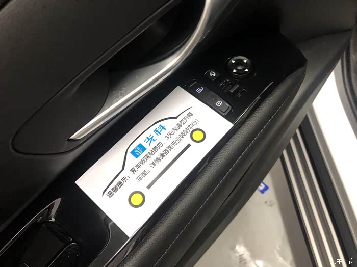 经过了一个小时,2个贴膜师傅终于完成了全车贴膜,不过贴完车膜三天不能开窗户,师傅会在主驾驶车窗遥控处,贴个提醒纸,防止大家3天内开窗,所以建议大家还是在贴膜之前多开几天窗户通风,先散散车子里新车的味道。