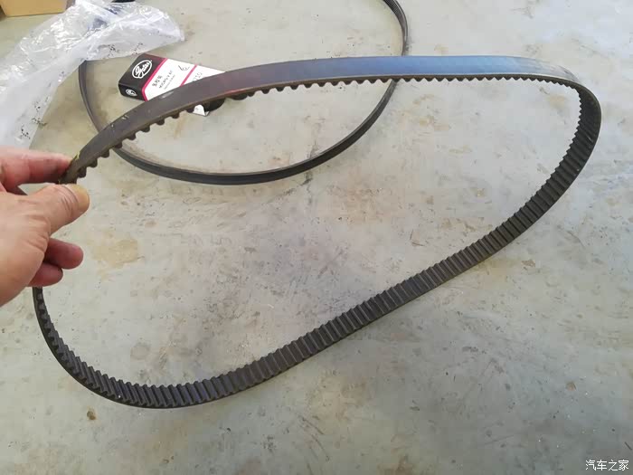 我手上拿着的,这就是刚拆下来的发动机旧的,已经用了10年的正时皮带了!好奇心促使又仔仔细细地看了几遍,它居然同发电机皮带一样,也是连一点点裂痕和老化的迹象都没有哦!难道这两根皮带我是白换了吗?