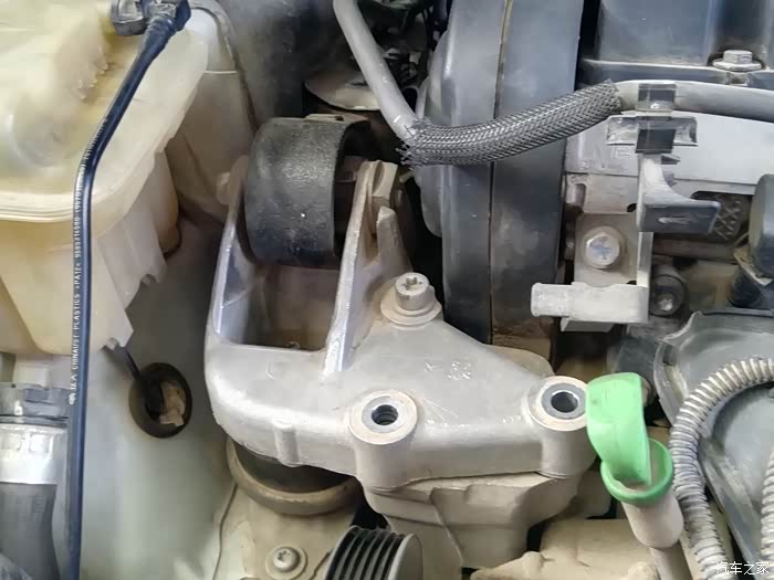 发动机正时皮带就在图中黑色的护罩内。其实,更换正时皮带并没有太高的技术含量,主要是作业空间狭小;需要拆除发动机支架,副水箱,右前轮,右前轮内侧叶子护板等等……