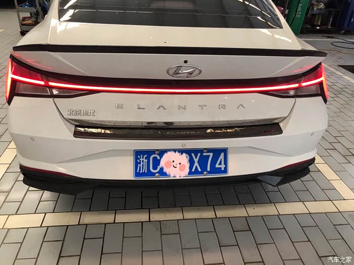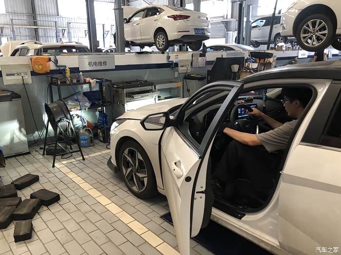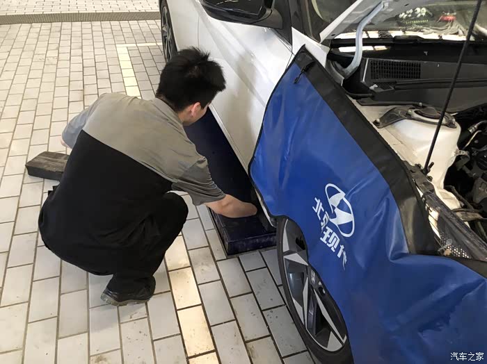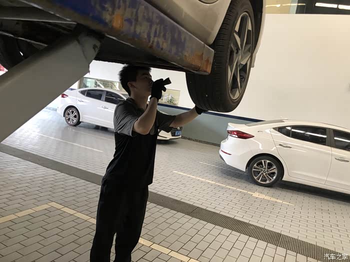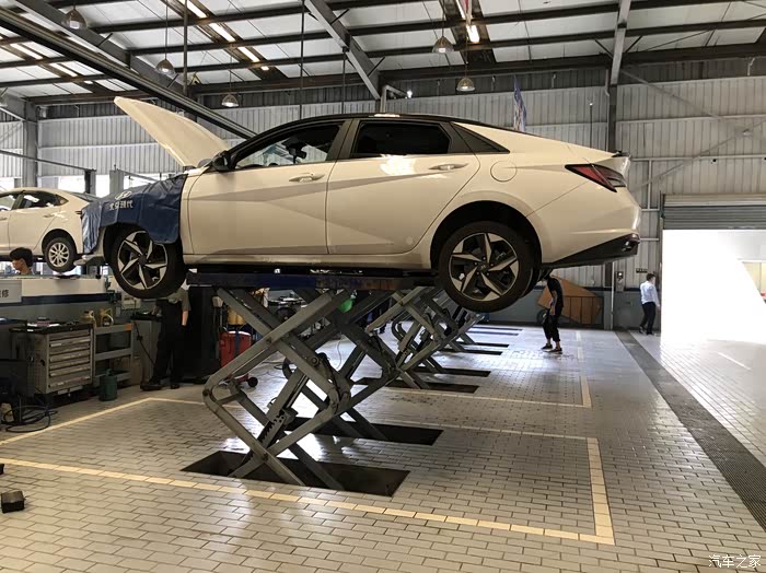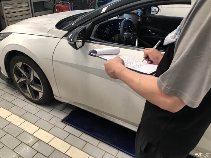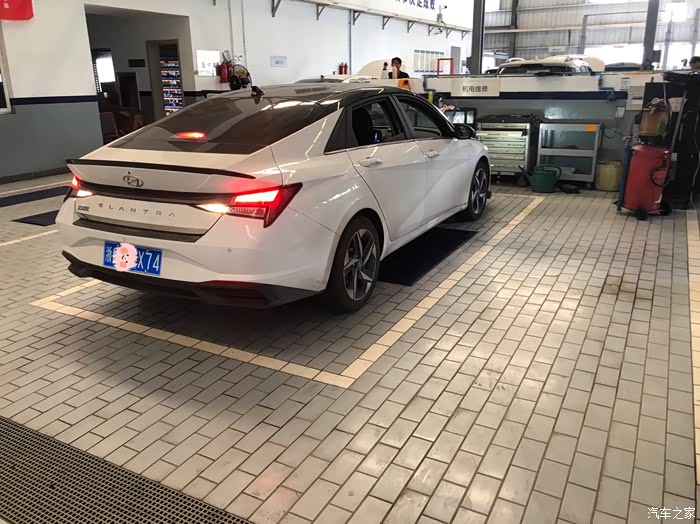 在工位上停好了车位,4s店里的师傅先测了一下我的伊兰特的灯光有没有问题。