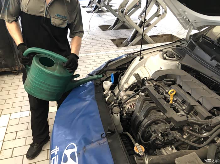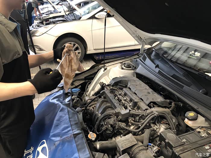 再次测一下机油尺的高度,确认没问题以后,加机油环节顺利完成