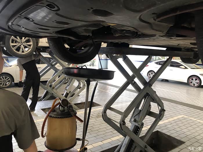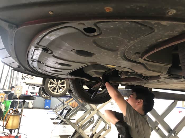 举高后,顺便用手电筒检查了一下底盘,开始放变脏的机油