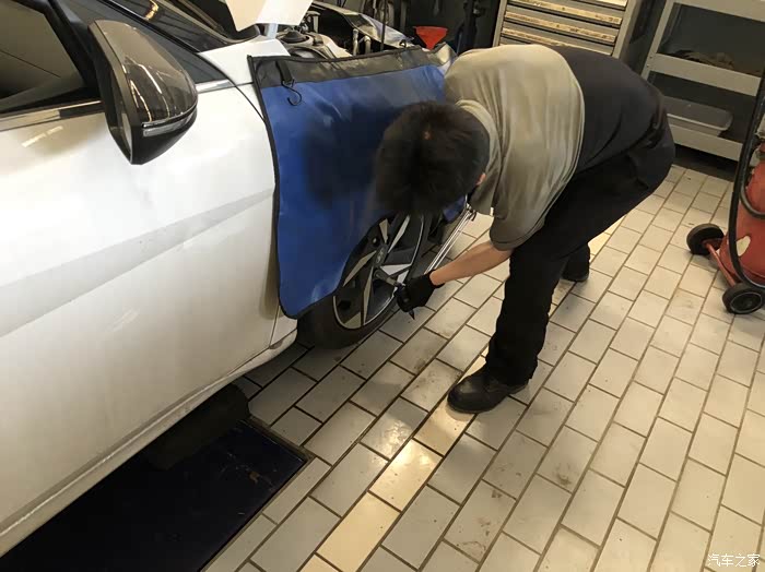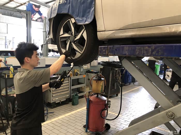 早上保养的车子还是很多的,由于是预约的,所以不需要等,在规定的时间到店,做了登记,售后前台就开着我的车进车间了。第一次进车间还是有点好奇的。