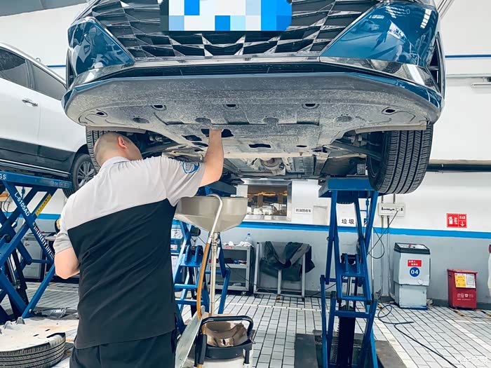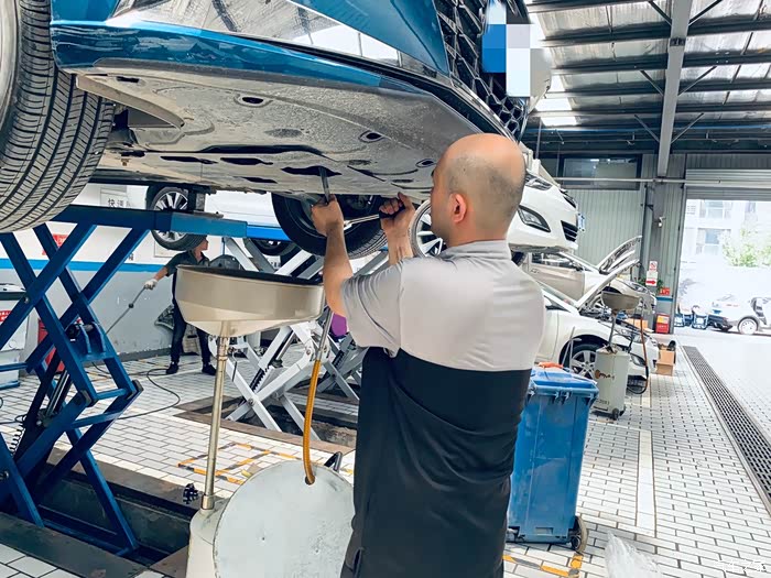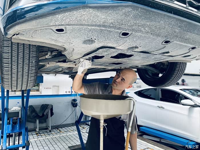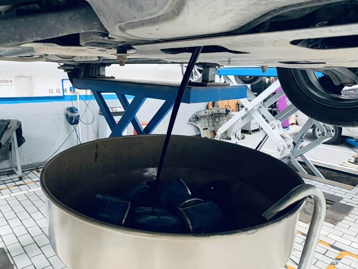 机油放完了,师傅拿出干净的布擦拭