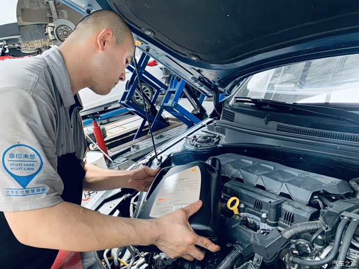 师傅拿出新的机油跟滤芯准备更换啦
