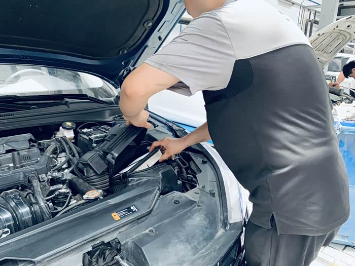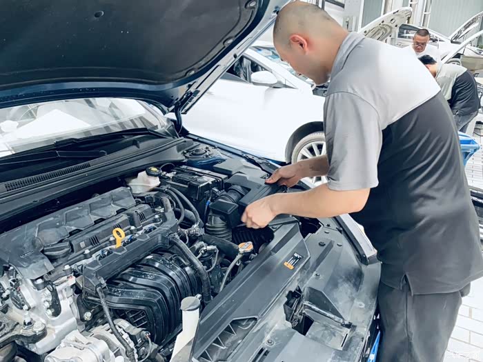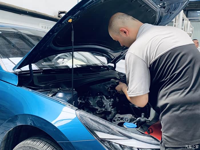 保养完毕师傅在认真的检查