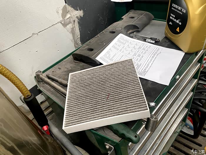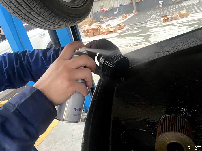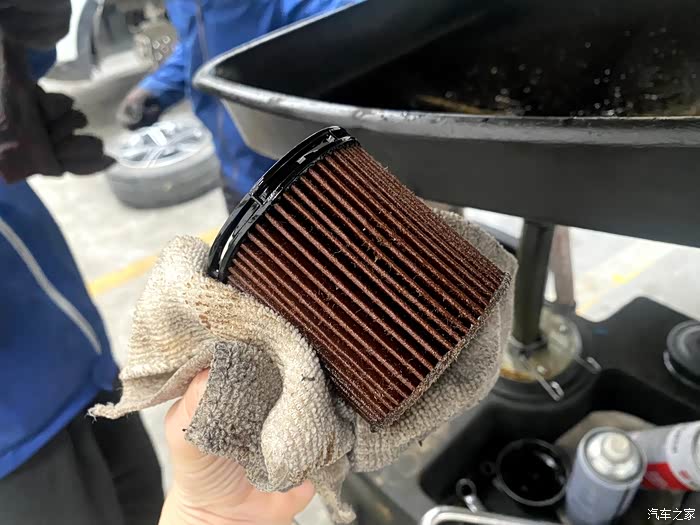 师傅给我放了机油准备更换机滤,放出来的机油乌漆麻黑的,看的太专注了都没拍到!